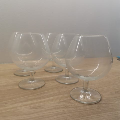 5 korkeampaa (12,5 cm) ja 3 matalampaa (11,5 cm) konjakkilasia yhteishintaan