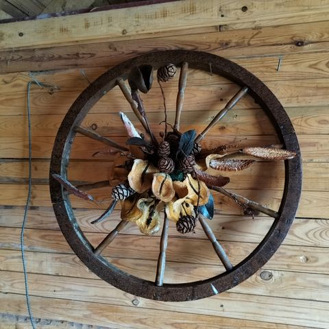 Ihana vanha, hyväkuntoinen rukin pyörä. Halkaisija 56cm.