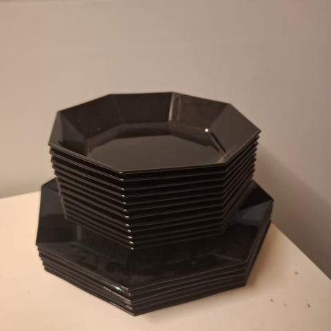 6 kpl isompia lautasia ja 5 kpl pienempiä lautasia ja tarjoilulautanen