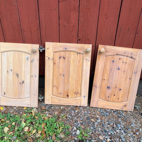 Myydään 2 kpl valkoisia kaapinovia joissa vetimen reikiä. (Näkyy kuvassa) Ovet hyväkuntoiset. Koko 49,5 cm x 174 cm. Hinta yhteensä 40,- / 2 kpl.