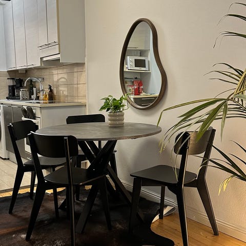 Hyvässä kunnossa oleva Frankie pöytä. Toki pieniä käytön jälkiä näkyy kannessa.
