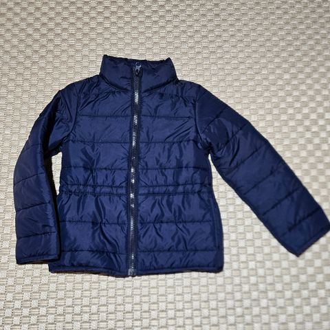 Ehjä, hyvässä kunnossa oleva kevyt toppatakki, koko 110. Väri tumma pinkki. Ainut moite jonka löysin on vikassa kuvassa näkyvä hihassa oleva tahra (melko huomaamaton).