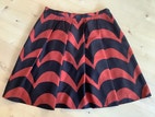 Myydään Samu-Jussi Kosken Marimekolle suunnittelema kellohame. Materiaali on 100 % silkkiä. Väreinä tumma, poltettu oranssi ja musta, kuosina Laine. Hameessa on musta vuori, asetaattia ja kuproa. Hameen kokomerkintä on 40. Hameessa on vetoketju ja nappikiinnitys, ei taskuja. Kahdet juhlat juhlittu, kevyt ja ilmava, silkki liikkuu kauniisti käyttäjän päällä.