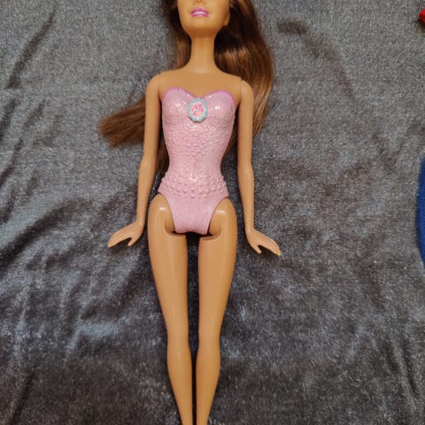 Jewel hair Mermaid -Barbie. Hiuksia lyhennetty ja kaulassa rikkoa, toinen korvis rikki.
