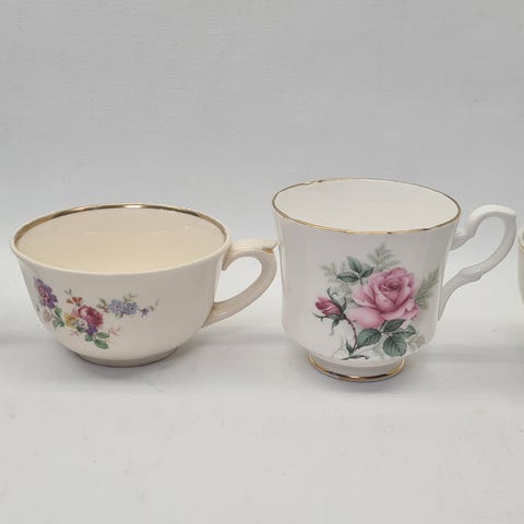 kaksi arabian vanhaa kahvikuppia. Toisessa kolhu eli pala puuttuu. Toinen ehjä. Ovat kuluneita, mutta nättejä. hinta ehjälle 4e ja kolhuinen 2e. Kulkeutuu ylöj-pla-tre. Tai postitus.