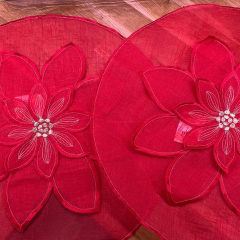 Jouluinen keittiöessu, pituus noin 81cm ja leveys noin 69cm. Keskimäki Oy:n valmistama, kaksi kertaa ollut trullittelukäytössä.