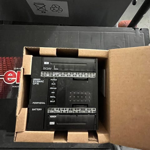 Käytetty, toimiva CJ1M-CPU11, Poweri CJ1W-Pd025, 1kpl SCU41-V1, I/O kortit 3kpl CJ1W-ID211, 2kpl OC211, 1kpl OD212 ,analog I/O CJ1W-MAD42 ja lämpöanturi moduli CJ1W-PTS52.