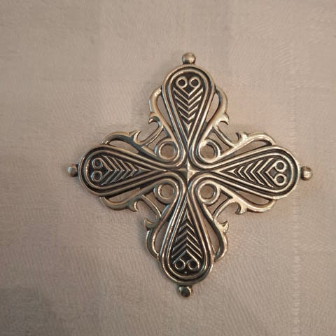 Myydään Kalevala Rintakoru. Hopeaa. Leimat löytyy. Solki Viikinkiaikainen. Halkaisija 5 cm.