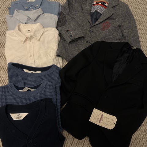 Pojalle sopivaa, kaikki siistiä vähänkäytettyä, ehjää, puhdasta ja hajutonta. 3 pitkähihaista, 1 teepaita, 1 neuletakki, 1 farkut.