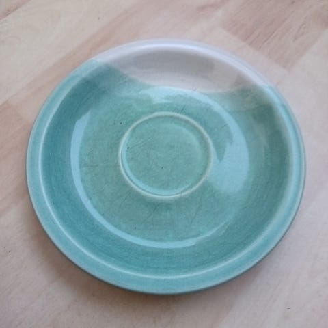 5kpl käytettyjä, tummansinisiä Sara -merkkisiä Kultakeramiikan lautasia, halk.25cm. Yhteishinta/nouto.