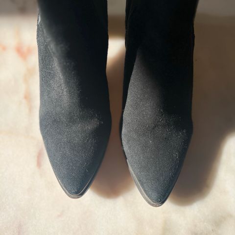 Korkeakorkoiset mokkanahkanilkkurit. Molemmin puolin vartta kultaiset vetoketjut. Ostettu Pariisista, ja jääneet kaappiin pölyttymään kun 10cm itselle liikaa. Nyt nämä aarteet myyntiin.