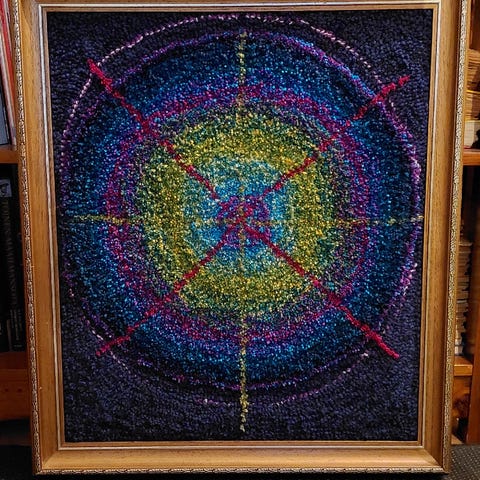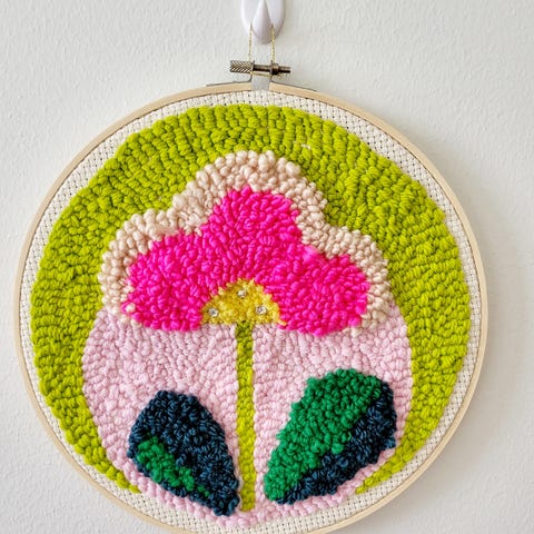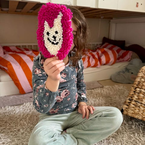 Itse tehty seinäkoriste (halkaisija 27cm) tuftaus -tekniikalla. Laadukkaat materiaalit. Sopii vaikkapa äitienpäivälahjaksi tai lastenhuoneeseen. Ilmainen toimitus Vantaan alueelle, muualle postikulut lisätään hintaan.