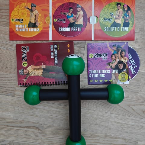 Sisältää DVDt ja käsipainot alkuperäisissä paketeissa.