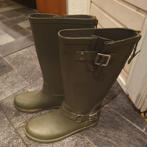 Myydään tummanruskeat Lemon Jelly-merkkiset korolliset kumisaappaat.