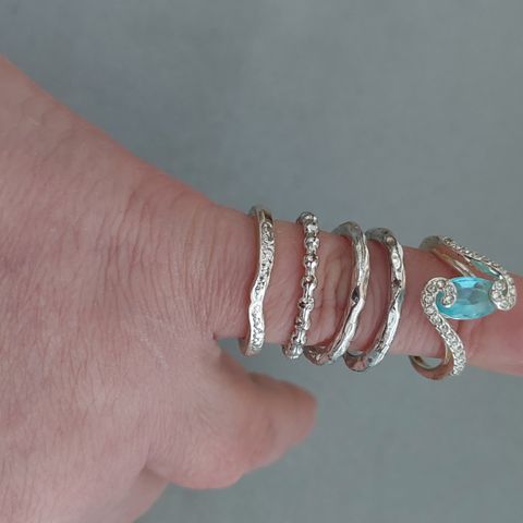 5 kpl sormuksia, myydään settinä. Hinta koko setille.