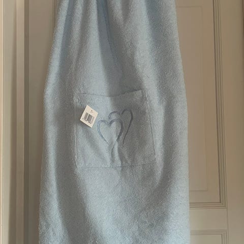Käyttämätön kirjailtu kylpyasu.Pituus 128cm ja leveys kainalon kohdalta 55cm.Voin postittaa.