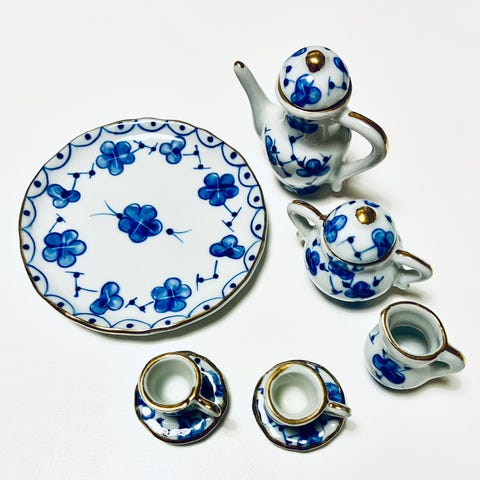 4 kahvikuppipari.yhdessä hieman halkeama,mut yhtenäinen.Kermakko ja jokin muu joka liimattu.70-80 luvulta koska omasta lapsuudesta