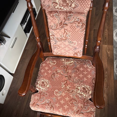 Ostetaan hyväkuntoinen kuvan mukainen jousikeinutuoli. Mieluiten pähkinänvärinen mutta myös tummanruskea käy. Ei saa olla kulumia. Tarjoa kuvan kera! Keinu, keinutuoli, kiikku