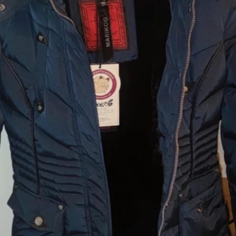 Kuvien navahoo takki ylimääräisenä. On karvaton jos ei hupun karvaa ja edessä olevaa lasketa. Mieto hajuveden tuoksu. On täältä ostettu enkä ole pessyt ja olikin epäsopiva. Akseli rinnanympärys noin 100 senttiä tähän takkiin.