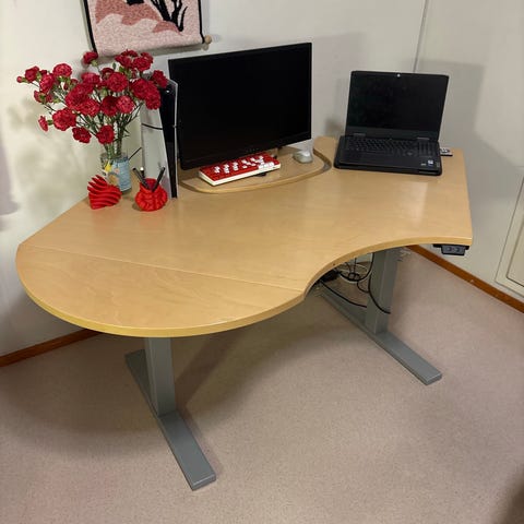 Säädettävä työtaso. Jaksaa kannatella näytön ja näppiksen ja läppärin. Helppo käyttöinen. Myydään sähköpöydän tieltä pois.