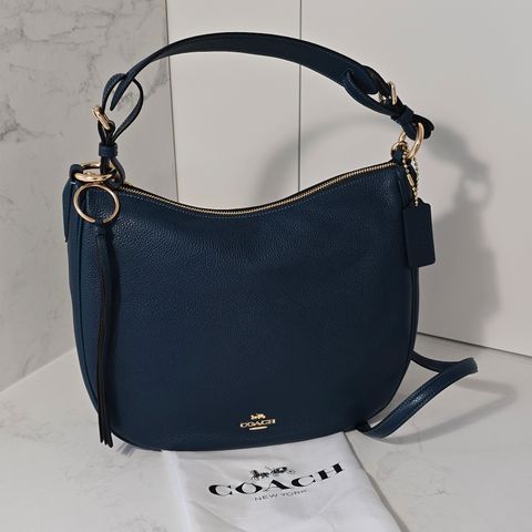 Kevyelle käytölle jääny Coach hobo crossbody. Tosi siisti, metalliosissa pientä kulumaa. Mukaan kaikki kuvissa näkyvä joka tullut alkuperäisestikin (kaksi hihnaa, säilytyspussukka). Ei laatikkoa.