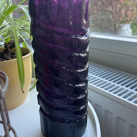 2. Riihimäen lasi, Tamara Aladin, viininpunainen maljakko 1462, korkeus 22cm, 50e