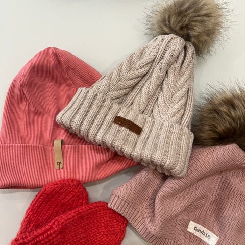 Myydään kaksi hyväkuntoista vauvan trikoopipoa, joissa kauniita ruusukuvioita ja perhosia sekä Metsolan Spaniel-koirakuosi. Ruusupipo ja Metsola kaksinkertaisia. Molemmat sopivat pieneen päähän reuna taitettuna. Pientä kokoa, n. 44-46.