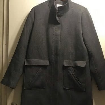 Vähäiselle käytölle jäänyt harmaa vuorellinen takki koko 44/46 (L), toimivat vetoketjut ja nepparit, kainalo-kainalo 58 cm, niska-helma 88 cm, hihansuussa takana nappikoristeet,