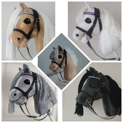 Käsityönä velboa kankaasta tehty rautias keppihevonen. Harja villalangasta. Kuvassa A4 koon hahmottamiseksi.