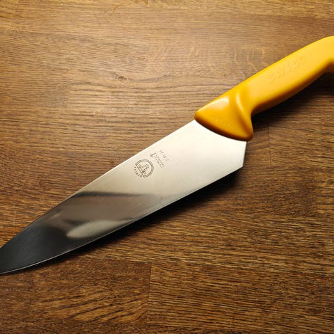 Hyväkuntoinen teroitusta vaille oleva Wengerin laadukas veitsi.