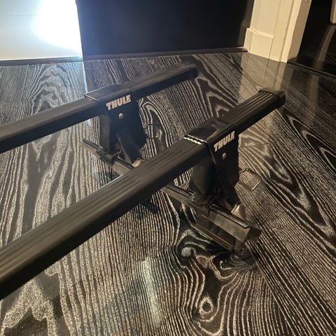 Vanhat Thulen alumiinijalkaiset kattotelineet vesikourulliseen autoon. "Kynsien" max. leveys n. 1170 mm. Max. korkeus n. 170 mm. Kaikki osat tallella ja kiristysruuvit pelittää.....HINTA 50 euroa noudettuna...LÄHETYS onnistuu,kulut ostajalle