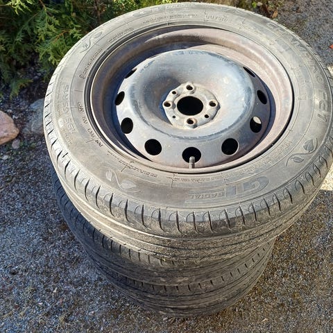 Erittäin hyväkuntoiset (lähes uuttavastaavat) nastarenkaat kaikissa pintaa 9mm ja nastoja ei puutu. Koko 195/65/15 peltivanteilla. Pulttijako 4x98