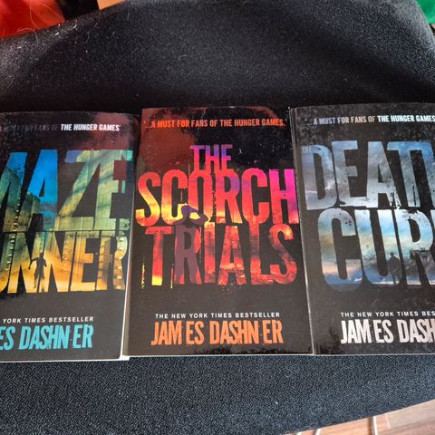 James Dashner -kirjailijan Maze Runner osat 2 ja 3. Kirjat The Scorch Trials ja The Death Cure. Kirjat ovat englanninkielisiä, pehmeäkantisia romaaneja.