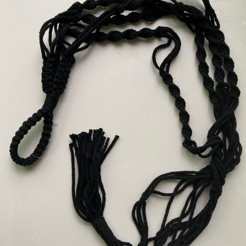 Uusi, kaunis naruamppeli kahdelle kukalle. Kokonaispituus kiinnityksestä alemman kukkapurkin pohjaan on 92.