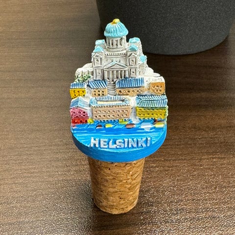 Painava akryylitimantti pullokorkki, hyvässä kunnossa. Ostettu mielestäni Stockmannilta mutta en löydä merkkiä.