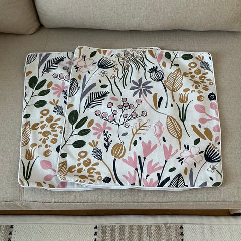 Alkuperäinen koko 45 x 45 cm, mutta pesussa hieman kutistuneet.