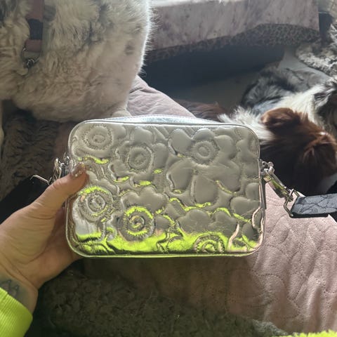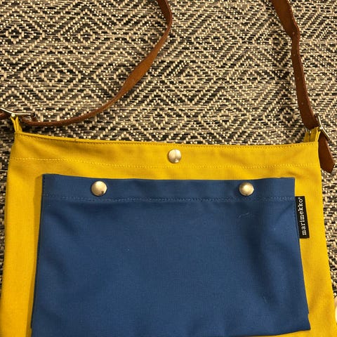 Uuden veroinen Marimekon Heli laukku. Kuosi nimeltään hamppu.