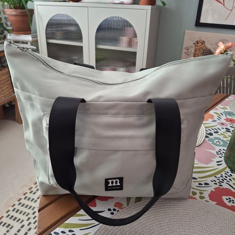 Marimekon uusi Play Tote solid laukku. Kankainen,mutta muovitettu sisäpuoli.