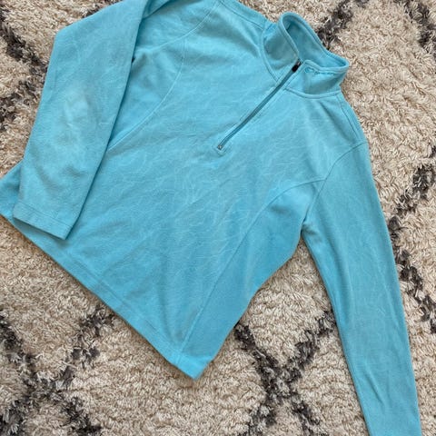 Vaaleansininen Wild-merkkinen fleecetakki. Veden ja tuulenpitävä. Hieman jämäkkä, sisäpuolen vuorin vuoksi. Sivuissa vetoketjutaskut, helmassa kiristysnyörit.