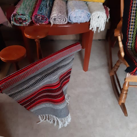 Pirteät punamustat räsymatot 5 kpl, kaksi yli kahden metrin mattoa, yksi reilun metrin ja kaksi pientä kynnysmattoa. Pitkien mattojen reunoihin tehty muutamia pieniä paikkauksia. Ei muita reikiä. Mattoja ei ole pesty. Nouto Salosta tai Turusta. Yhteishinta 15€.