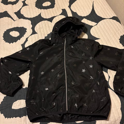 Harmaa Alley tuulitakki/kevättakki oransseilla yksityiskohdilla, koko 152cm. Verkkovuori edessä ja takana, hihoissa liukas vuorikangas. Edessä vetoketjulliset taskut. Helmassa kiristysnyöri. Hupussa ja hihansuissa tarrallinen kiristysmahdollisuus. Takin edessä pikkuinen reikä päälikankaassa ja hihojen heijastinnauhoissa pientä kulumaa.