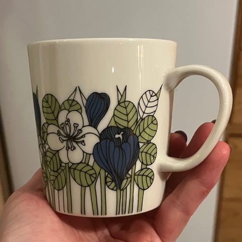 Arabia Krokus munakupit, 6 kpl. Yhdessä kupissa lohkeama. 5€ / kuppi.