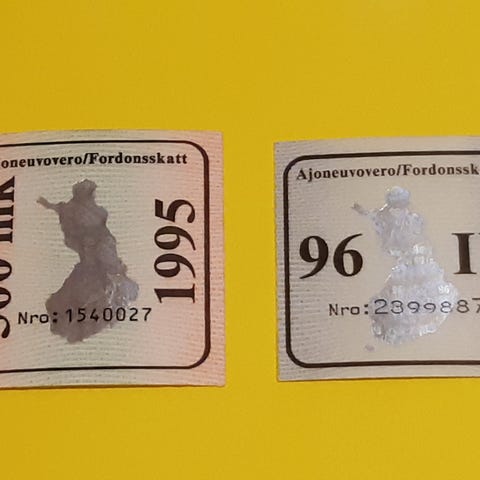 Iso 13x21cm autojen tarra vuodesta 1993.
