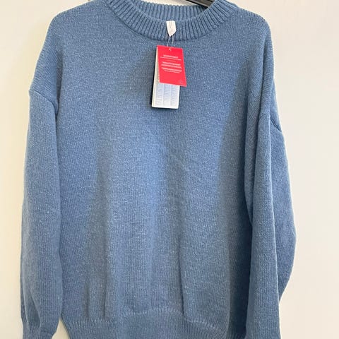 Itselle pieneksi jäänyt tummansininen Uniqlon villapaita.