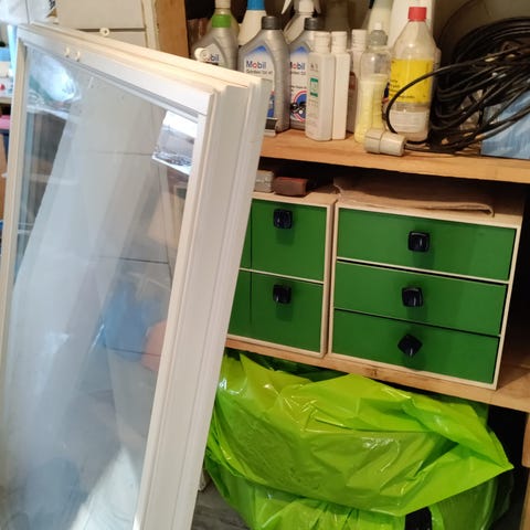 Komea ikkuna kokonaisuus, leveys 170 cm, korkeus 122 / 111 cm, yhden ikkunan leveys 56, paksuus 4,2.