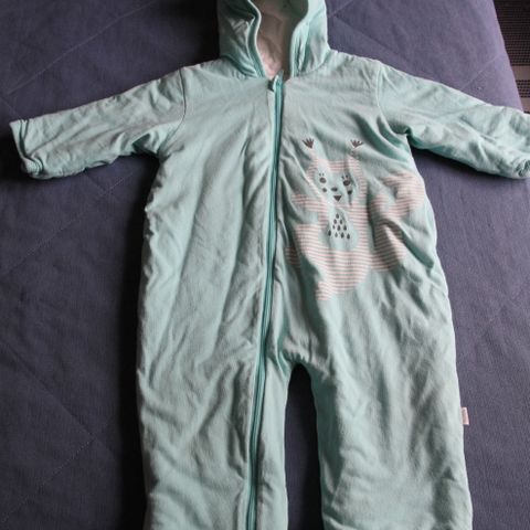 Kinderit puuvilla pintainen vanuhaalari uusi vain käyttöönotto pesty. Välissä oleva vanu on tosi ohut. Koko 70cm ja vastaa kokoaan. Ihanteellinen vaunuihin tai turvakaukaloon. Lahkeet ja hihansuut mahdollista pitää auki tai kääntää kiinni "tumpuiksi". Kiinteä huppu. Tämä on vai pesty sensitivellä nurinpäin, ei ollut sopiva oikeaan aikaan. Taloudessa ei tupakoida, eikä ole eläimiä. Hp.5€