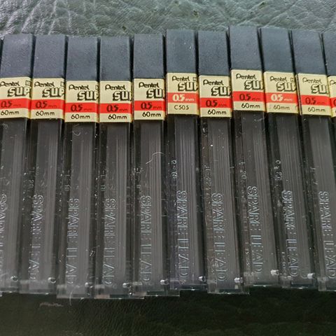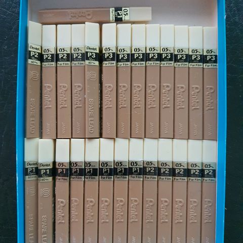 Myydään tarpeettomana 3 kpl 0.2 mm Pentel Orenz ja Orenz Nero -lyijytäytekyniin soveltuvaa 0.2 mm lyijyä. Yksi on pyörinyt laukussa joten putkilossa hiema ulkoista kulumaa, mutta kaikissa pitäisi olla yhä täysi määrä lyijyä, eli 20 kpl.