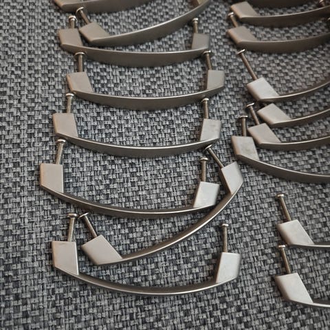 Harjattu mattapintainen metalli, pakkaus sisältää ruuvit.