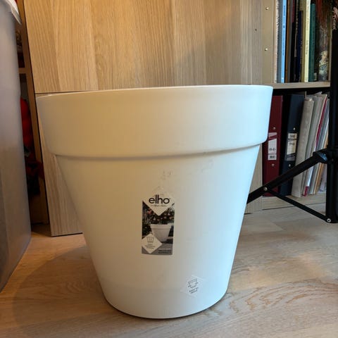 Myydään tarpeettomana keraaminen valkoinen ulkoruukku. Halkaisija n. 17,5 cm. korkeus n. 16 cm. Ruukku on täysin ehjä, mutta kyljessä pieni tumma kauneusvirhe