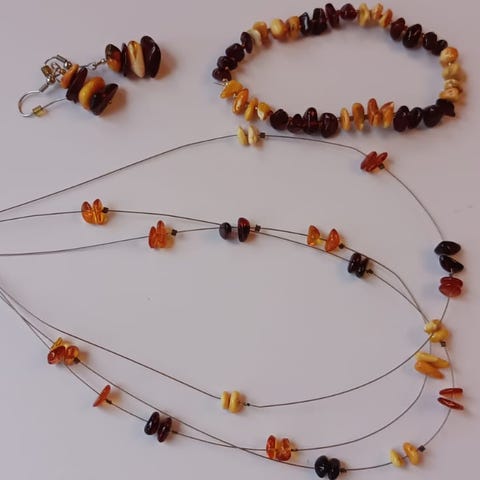 Kaunis vintage meripihkasetti, ostettu vuonna 1972 Moskovasta. Kaulakoru 58 cm ja rannekorun sisäympärysmitta 19 cm.